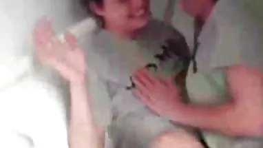 Flashing - Asian slut flashing and swallows two huge dicks at once